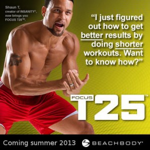Yes, you are working out for less time. But since you have your shorts on, since you have your sneakers on, and you managed to Push Play, I’m just asking you to give it everything you’ve got, for ONLY 25 minutes. You focus, and you go! 25 minutes. 5 days a week. 100% results. And there are major university studies out there that prove the value of shorter, more intense workouts. But I’ll save that for later. The only question now is, do you want to be one of the first to see these routines and what kind of results you can get? The answer is yes, because these routines were created at the specific request of Beachbody® CEO Carl Daikeler. The guy’s got no time, and he personally reviewed every detail so he could make T25 HIS personal program. Don’t miss the biggest breakthrough in health and fitness since INSANITY. Join our email list and I’ll make sure you don’t miss out on the latest news about FOCUS T25. —Shaun